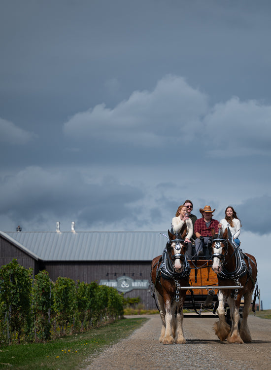 Our Horse-Drawn Vineyard Tours offer a unique and memorable way to explore Lightfoot & Wolfville's Home Farm Vineyard - where rolling vineyards, gentle Bay of Fundy breezes and sustainable farming practice come together in harmony.